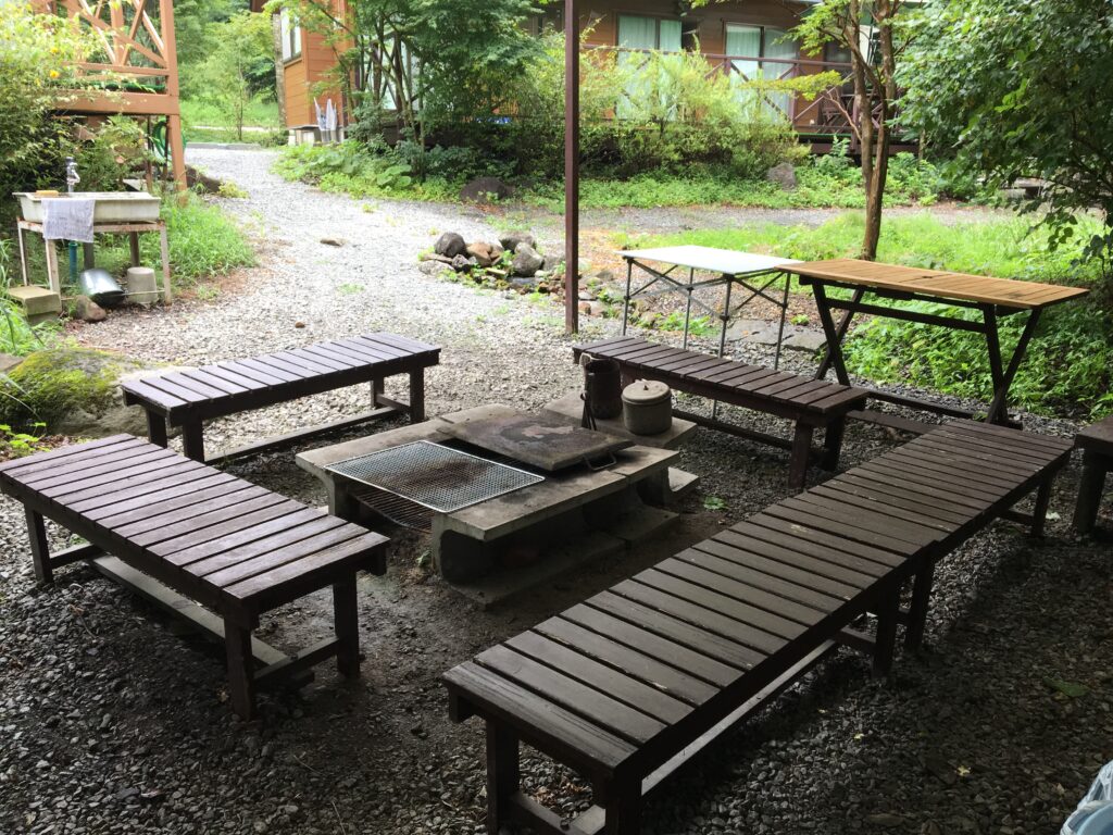 ★屋根付きバーベキュー設備が各棟に付属している!雨でもバーベキューができる!用具はそろっている!