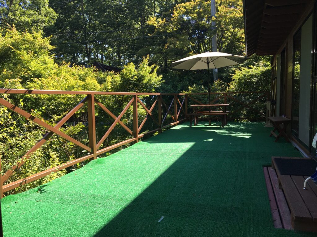 ベランダにはテーブルセットも置いてあり、パラソルも設置されていますので、朝ご飯などを気持ちの良い空気の中で食べるのもいいかもしれません。