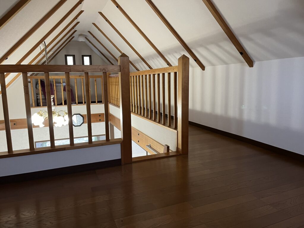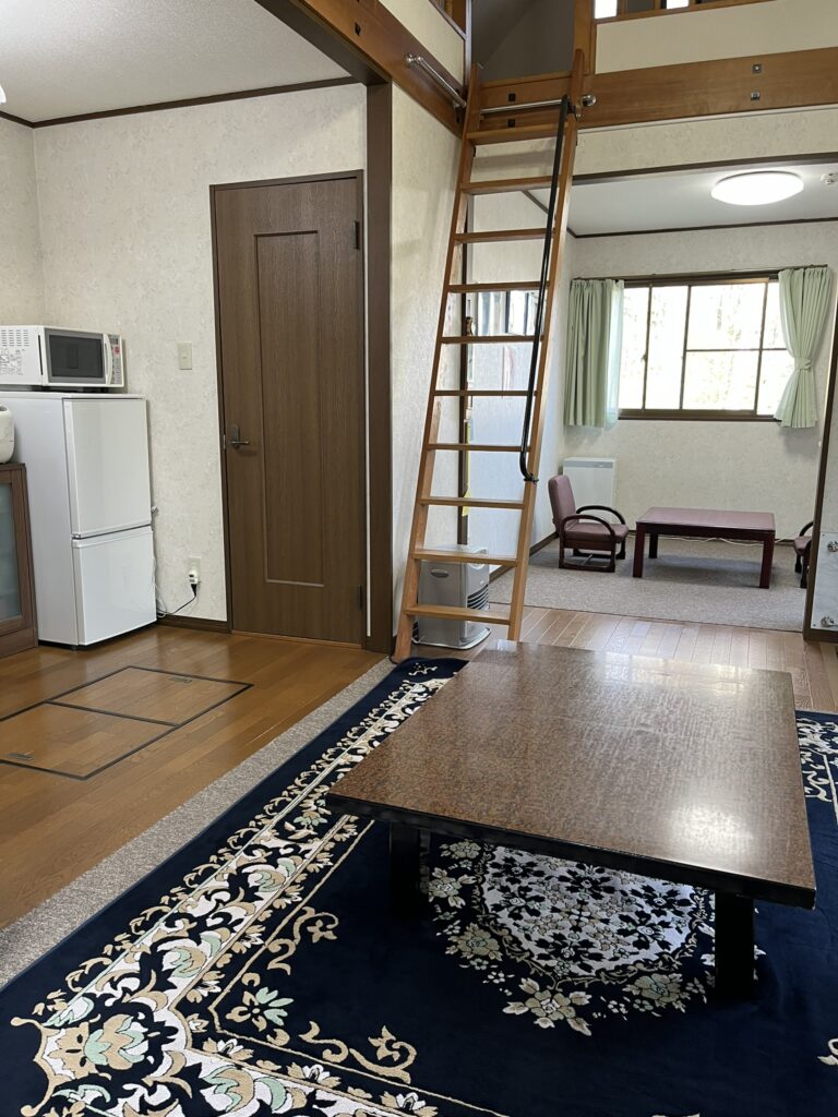 ロフトに上るのははしごです。ちょとだけ上るのに注意が必要です。 ロフト部分は4.5畳×2か所です。AB棟より狭いですが、秘密基地のような雰囲気です。 ロフト天井少し低いです。